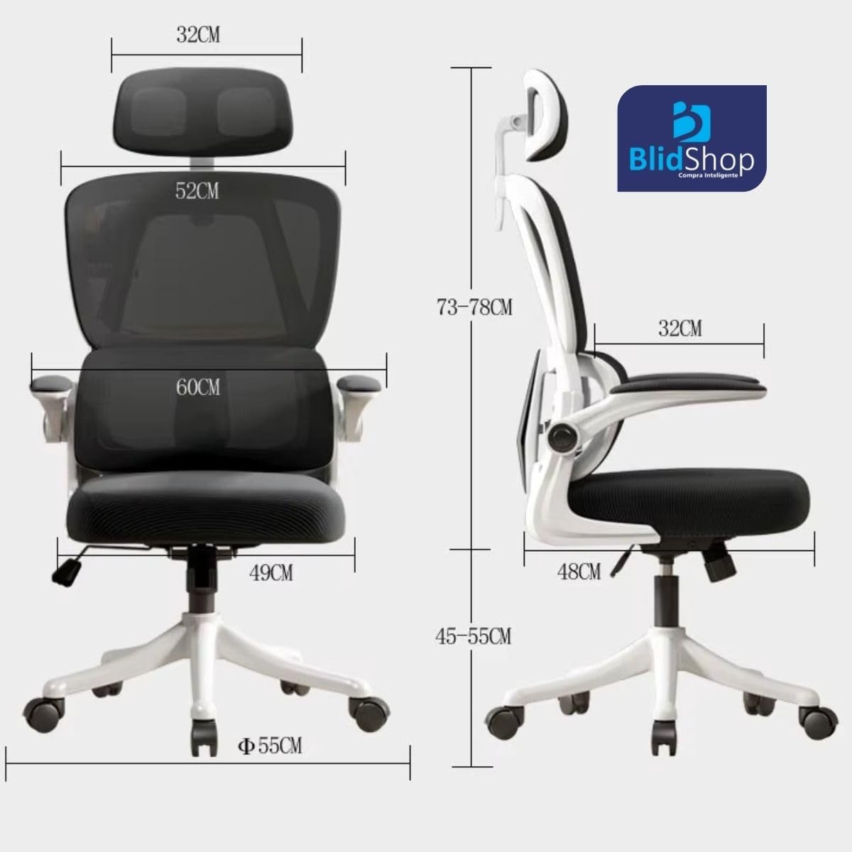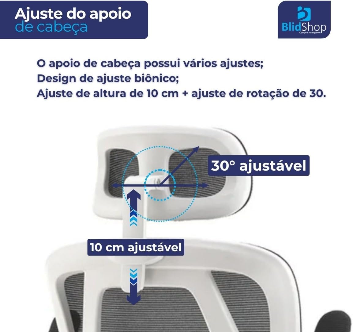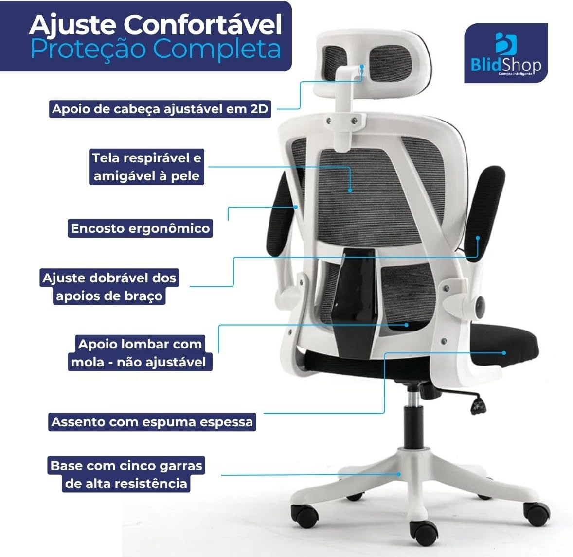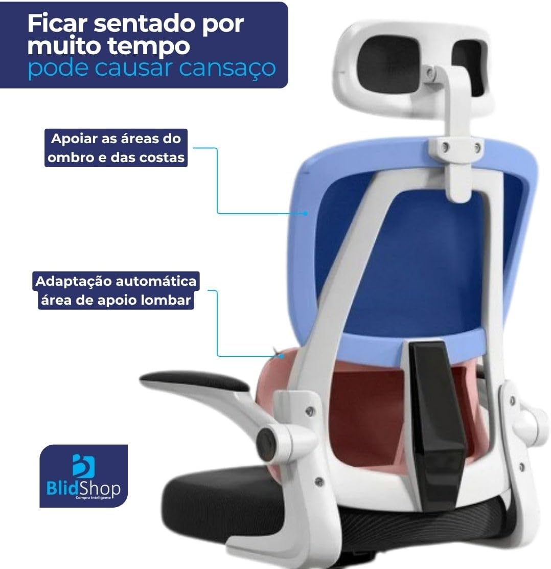 - Design ergonômico com encosto alto em tela mesh respirável